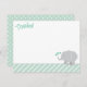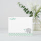 Chá de fraldas doce e caprichoso, obrigado a você, nota o texto "Obrigados!" e um adorável bebezinho elefante com salpicos em forma de coração, com espaço para sua mensagem manuscrita. A design inclui um padrão de borda de faixas diagonais, bolinhas no verso e um esquema de cor neutro em relação ao gênero, verde de menta, cinzas e branco.
