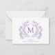 Cartão de Nota Clássico Violet Floral Crest Monograma