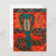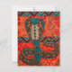 Uma cobra cor de lacre e laranja contra um fundo floral laranja e vermelho.