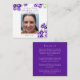 A simples oração de homenagem de manutenção quadrada ou carta poema dá às famílias a habilidade de ter uma lembrança de homenagem com uma foto especial do seu amado. O simples skyflower roxo duranta hand watercolor gráfico floral arte memorável cartões de oração de tributo podem ser personalizados com sua própria foto especial, detalhes de vida e orações ou poemas no sentido inverso, atualmente tem o Salm 23. A foto é para fins de ilustração apenas por favor substitua-a pela foto de seus entes queridos. Original pintado com carinho pelas flores de aquarela e design por Sarah Trett para www.mylittleeden.com
