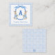 Cartão De Notas Coelho Azul Gingham Monograma Crest