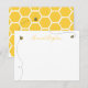 Conjunto de cartões de nota personalizados com abelhas fofas e um padrão de colmeia no verso do cartão.