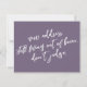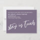 Nesta peça, a fonte de script escrita à mão foi usada para criar gráficos que retratavam as palavras "novo endereço. ainda vivendo fora das caixas. não julgue." na frente, e "mantenha-se em contato" no verso. O fundo "compota de uva" do Pantone pode ser mudado para qualquer cor que você preferir. Por favor, responda a quaisquer solicitações especiais ou personalize a assistência. 100 //