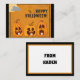 Seus filhos podem desejar a todos um Feliz Halloween com esses cartões de abóbora laranja assustadores! Personalize o verso adicionando o nome ou mensagem personalizada de sua escolha.
