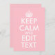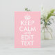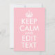 Crie sua paródia de texto do design clássico "Mantenha calma e continue". Personalize a cor de fundo rosa para satisfazer as suas necessidades. Altere as informações do marcador de posição "Manter Calmo e Editar Texto". Tipografia ou design de texto personalizados, rosa e branco.