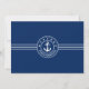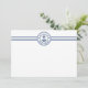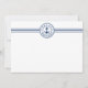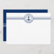 Nautical themed, personalized correspondence office note cards featuring your family name, company, event or other desired text in regal typography. This 2 sided unique design features a custom boat anchor with rope and seven stars for the seas in navy blue and white.