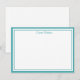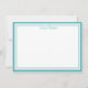 Custom name Note Card shown in white with an teal color double border trim.