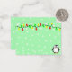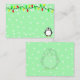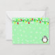 A cute black and white penguin drawing. Baby animal blank note cards. Green holiday themed version with snow. Gift idea for kids.