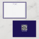 Dark Blue three border monogram Note Card with QR Code on the back for personalized website or just simple information.