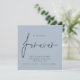 Decidido em Forever Blue Square Salvar a Data. Design simples em azul empoeirado para convidar seus convidados para salvar seu encontro. Decidimos no Forever que está em um script de na moda está no centro.O resto do texto que você pode personalizar facilmente. As cores de texto e de fundo podem ser alteradas se você quiser se adequar melhor ao seu tema de casamento através da opção personalizar mais.