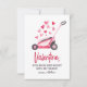 Este cartão temático de cortador de grama é perfeito para o Dia de os namorados, com um cortador rosa e vermelho colorido com corações ao redor.