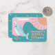 Um cartão do Dia dos Namorados para Sala de Aula caprichado que apresenta um narval nadando no mar com o sol brilhando. O texto é um trocadilho que diz: "Eu acho que você é fantasticamente nadador!" não, na verdade "I think you are whaley fintastic!" A linha "De" é editável para o nome da sua criança. As cores são em tons de laranja, rosa e azul.