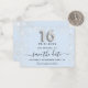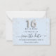 Uma garota e moda Salve o cartão de data para uma doce festa de aniversário 16, 16. Um fundo azul-bebê decorado com poeira falsa. Personalize e adicione uma data e nome/idade. O texto: Salvar a Data é gravado com um script de estilo com letra de tendência grande. Número 16 com uma fonte no estilo do balão.