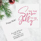 Espalhe o espírito alegre das festas com este cartão de caligrafia moderna que apresenta a frase festiva 'É época de ser alegre' em letra vermelha negrito. Perfeito para corretores de imóveis, proprietários de pequenos negócios e profissionais que desejam enviar saudações de Natal memoráveis a clientes e colegas. O verso inclui espaço para o nome da sua empresa, logotipo, site ou detalhes de contato para que você possa manter sua marca em destaque. Personalize facilmente para um toque de Natal polido e profissional. Ideal para notas de agradecimento a clientes, envios de Natal para negócios e saudações atenciosas de fim de ano.