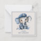 Esta pequena e fofinha carta mostra um adorável elefante bebê vestido com camisa azul náutica e listrada branca com um boné de âncora. Personalize a frente com sua escolha de nome e texto especial.
