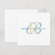 Cartão De Notas Elegant Blue Gold Initial Monogram