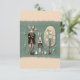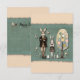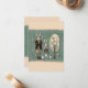 Cartão de Páscoa com fundo de papel rasgado verde na frente e atrás. Dependendo do tamanho, o aspecto rasgado pode não ser mostrado ou impresso. Se isso for um problema, entre em contato conosco e redimensionaremos para atender às suas necessidades. Coelho elegante e menina em pé com os braços cruzados e a menina usando orelhas de coelho. Árvore com efeito de colagem de primavera. As cores podem não ser impressas em neon, mas as cores mais próximas serão escolhidas. Coelho e ovo também na ilustração.