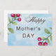 Cartão do Dia das Mães com céu azul e bagas vermelhas da Primavera.