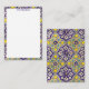 Cartão De Notas Flores Amarelas de Padrão Azul-Mediterrânico Perso