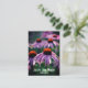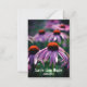 Linda echinacea púrpura ou acompanhantes. Fotografia foi tirada no início do primavera nos jardins RHS Wisley. Cartão de convite de aniversário com informações de convite no verso. Guardar a data, data, evento de aniversário, nome da pessoa de aniversário, local e hora do evento.
