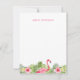 Cartão de nota vertical simples personalizado com um primeiro nome em texto rosa moderno, acentuado com um belo flamingo rosa e uma borda de luxuriantes folhas de palmeira tropicais verdes e flores de hibisco rosa. Um design de papelaria colorido, feminino e arejado para o verão.