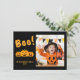 3 abóboras cor de laranja no cartão de saudação do Dia das Bruxas da família negra, personalizado com sua foto, seu nome de família e qualquer texto que você escolher. Nosso texto diz "Boo". Contacte-me para obter assistência com as suas personalizações.