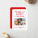 Cartão de Nota de Foto do Dia dos Namorados Divertido Você é Minha Namorada Favorita apresenta sua foto favorita com o texto "Você é minha namorada favorita, feliz Dia dos Namorados" em tipografia vermelha moderna acentuada com um simples coração de amor vermelho. Adicione seu texto personalizado para personalizar no interior. Acentuado com corações de amor. Presente perfeito para sua namorada no Dia dos Namorados. Criado por © Evco Holidays www.zazzle.com/store/evcoholidays