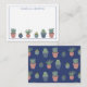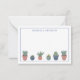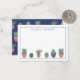 This personalized stationery note card features a painted design of succulents and cacti in colorful pots. It has a clean white writing area with a blue border and a patterned back. The style is simple, chic, and perfect for a gardener or as a thank you note.