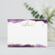 Cartões de nota personalizados elegantes, com geode agado roxo e mármore acentuados com brilho dourado falso e iniciais monograma de script de caligrafia em ouro e nome em roxo na frente e bordas agitadas no verso. O exemplo é mostrado no tamanho de 3,5x5 pol em papel branco de formato de ogiva—outros tamanhos e tipos de papel estão disponíveis na página de pedidos. ALTERAÇÕES: O estilo, cor, tamanho e posicionamento da fonte de texto podem ser alterados clicando em PERSONALIZAR AINDA MAIS na seção PERSONALIZAR para uma aparência personalizada. ASSISTÊNCIA: para obter ajuda com a modificação ou personalização do design, alteração de cor, transferência do design para outro produto ou você gostaria de coordenar itens, entre em contato com o designer ANTES DE ENCOMENDAR através da guia MENSAGEM de bate-papo Zazzle ou envie um email para makeitaboutyoustore@gmail.com.