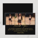 Celebrate your milestone with this elegant black and gold graduation thank-you card. Featuring a modern 3-photo collage and sophisticated gold script calligraphy, this card allows you to share your favorite graduation memories with friends and family.