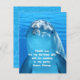 Obrigado de aniversário, seus cartões de nota com rosto de golfinho. As letras brancas e onduladas são usadas para criar uma mensagem personalizada de "obrigado você" que é impressa sobre o golfinho. A parte de trás das cartas tem uma imagem de água. Escolha qualquer placa de tamanho que ajustado este design.