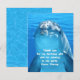Cartões de nota plana de agradecimento de aniversário com rosto de golfo. Letras onduladas e brancas são usadas para criar uma mensagem personalizada de “obrigado” que é impressa sobre o golfo. A parte de trás dos cartões tem uma imagem de água. Escolha qualquer tamanho de cartão que se adapte a este design.