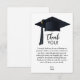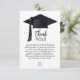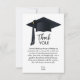 O boné preto e o formando destacam o obrigado de graduação personalizado que você envia nestas placas de nota simples.