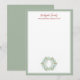 Simples e festivo, este papelaria pessoal apresenta seu(s) nome(s) ou monograma com o novo endereço em uma escrita à mão e tipografia sans tradicional, projetado com meu original desenho de guirlanda de aquarela pintada à mão e arte de frutas. Uma borda de verde sage emoldura seus detalhes. O cartão reverte para uma cor verde sólida correspondente. Uma escolha elegante para anúncios de nova casa, cartão de agradecimento, presente de corretor de imóveis para casa nova ou cartão de nota comercial. Para ver mais cartões de nota em branco como este, visite www.zazzle.com/dotellabelle