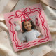 Custom Valentine card with scalloped photo, wavy bow border, and clean, modern design. This design is perfect for kids to share with friends at school.