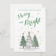 Um cartão de Natal com três árvores festivas e a mensagem “Suas indicações tornam meu negócio alegre e brilhante.” Uma maneira calorosa e profissional para corretores agradecerem aos clientes e celebrarem a temporada. A paleta de verde suave e dourado se encaixa perfeitamente na tendência nostálgica de Natal. Personalize facilmente o verso com sua mensagem e informações de contato.