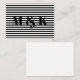 Cartão De Notas Iniciais de monograma personalizadas listras preta