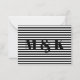 Cartão de Nota iniciais de monograma personalizadas listras pretas e brancas
