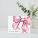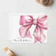 Este divertido e feminino design de cartão de nota apresenta um grande laço rosa em aquarela na frente à direita, com o nome do destinatário elegantemente exibido em caligrafia manuscrita na parte inferior esquerda. O verso do cartão oferece um espaço totalmente em branco, perfeito para escrever notas pessoais.