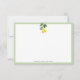 A primeira época de colheita de limão é do final do inverno ao início do verão. No entanto, você pode celebrar o prazer de um florescimento cítrico o ano todo com este cartão de papelaria personalizado. Ele apresenta um padrão de limão amarelo e verde vibrante junto com um ponto para seu nome pessoal e detalhes.