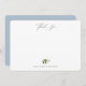 Limões botânicos de cor aquosa elegantes, folhas e flores, galho de notas personalizado. A placa apresenta a caligrafia preta "Obrigado" no topo, linha de texto modelo para o seu nome e coordena o suporte a cor azul empoeirado claro.