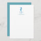 Simples e fofo, esta papelaria personalizada mostra seu nome ou monograma com um cavalo marinho azul e estrelas-vivas na minha mão original pintada de aquarela. O dorso é uma cor azul-turquesa elogiosa sólida. Obrigado de casamento perfeito, enviando mensagens para amigos ou para amantes de cavalos. Perfeito para presentes. Para ver mais placas de aquarela de Victoria Grigaliunas como esta, visite www.zazzle.com/dotellabelle