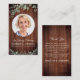 Madeira Rústica e Eucalyptus Greenery Funeral Única Obrigado Cartões. Estes cartões de compaixão funerária apresentam uma foto personalizada na madeira rustica com eucalipto verde, com citação em Loving Memory. Estes cartões de compaixão memoriais são perfeitos para o funeral, cartas de agradecimento, ou celebração da vida, cartas de agradecimento. Personalize novamente com sua mensagem de obrigados, nome e datas...COPYRIGHT © 2020 Judy Burrows, Black Dog Art - Todos Os Direitos Reservados. Memorial Rustic Eucalyptus Foto Funeral Obrigado Nota Cartão