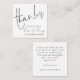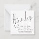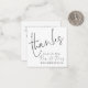 Um encantador MÍNIMO de 2,5" x 2,5" quadrados por suas notas de agradecimento. NOTE se você estiver nos EUA, o quadrado de 2,5 pol é menor que o requisito mínimo de postagem dos EUA, portanto escolha o tamanho quadrado de 5,25 pol x 5,25 pol se você estiver planejando enviá-los (Observe que os cartões quadrados podem custar mais pelo correio do que os retangulares). Alternativo há outros tipos de placa para este design disponíveis nesta coleção. Roteiro Novo Sr. ª Casando Qualquer Obrigado De Cor. Obrigados e Sr. & Sra. são colocados em um script elegante no estilo de escrita manual na frente e no resto do texto em cada lado você pode facilmente personalizar com seus nomes, e seu obrigado você envia mensagens para seus convidados. Mostrado em preto e branco, no entanto, pode ser alterado para qualquer cor de sua escolha por meio da opção personalizar mais.