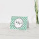 Cartão De Notas Mint Green Gray Quatrefoil Name Monogram