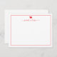 Modern red heart and calligraphy script font is featured on these flat stationery note cards. Easily personalize with a name or monogram.