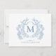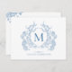 Cartão de Nota Clássico Azul Floral Crest Monograma