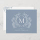 Cartão de Nota Clássico de Derrame Azul Floral de Crest Monograma