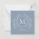 Cartão de Nota Clássico de Derrame Azul Floral de Crest Monograma