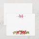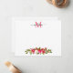 Cartão de Nota com Monograma de Rosas Florais de Folhas e Frutas de Azevinho de Natal em Aquarela Moderna com Escrita Moderna e Elegante e Feminina
